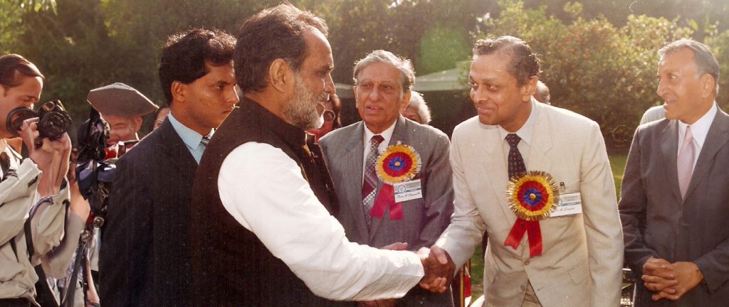 Dr. Dravid receiving the Vijay Ratna Award from Mr. Chandrashekhar, Prime Minister of India, 1990