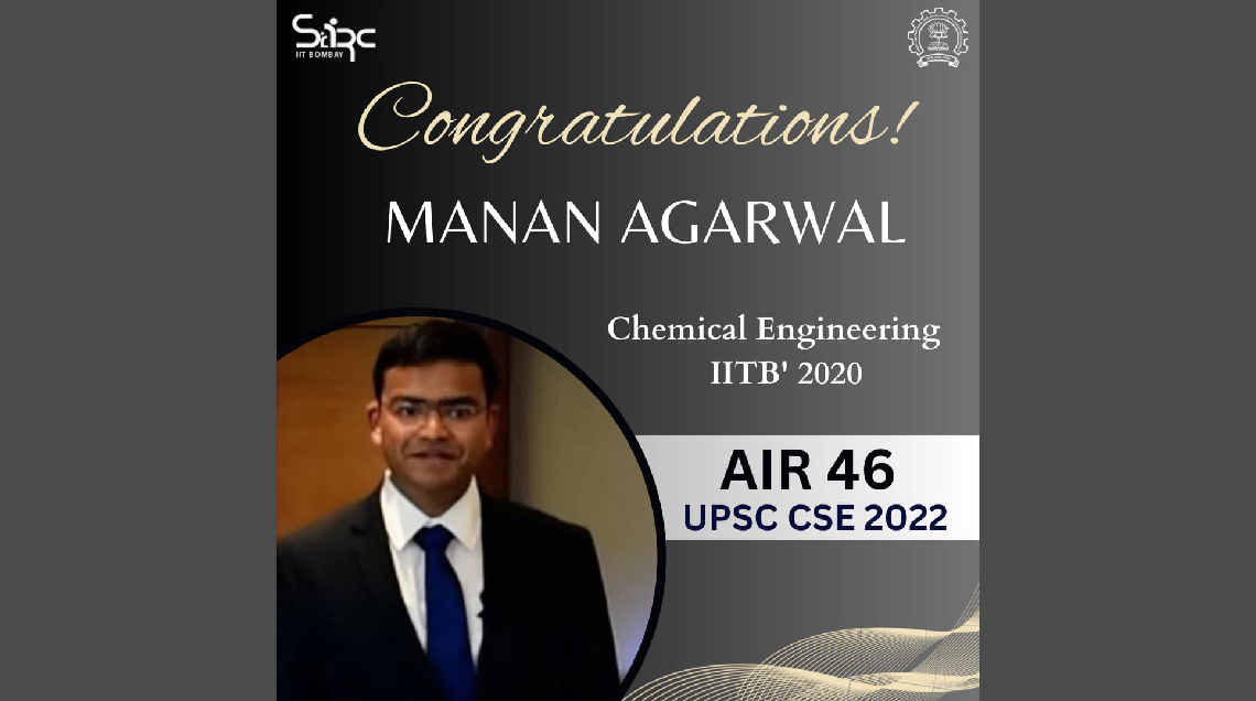 IIT Bombay is immensely proud of its very young alumnus, Mr. Manan Agrawal (B. Tech., Chemical Engineering, 2020) for securing the All-India Rank 46 in the Union Public Service Commission (UPSC) Civil Service Exam 2022. As yet another IIT Bombay alumnus rises to the top in one of the toughest entrance exams in the country, our legacy of excellence continues to shine.