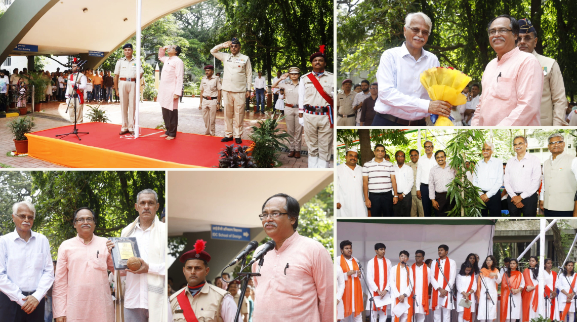 IIT Bombay commemorated India’s 78th Independence Day on August 15, 2024, with a ceremony held near the iconic arch in front of the Nandan Nilekani Main Building. The event began at 9:00 a.m. with the hoisting of the National Flag by Prof. Shireesh Kedare, Director of IIT Bombay. The ceremony was honoured by the presence of the Chief Guest and distinguished alumnus Mr. Deepak Satwalekar (B.Tech. (Hons.), Mechanical Engineering, 1971).