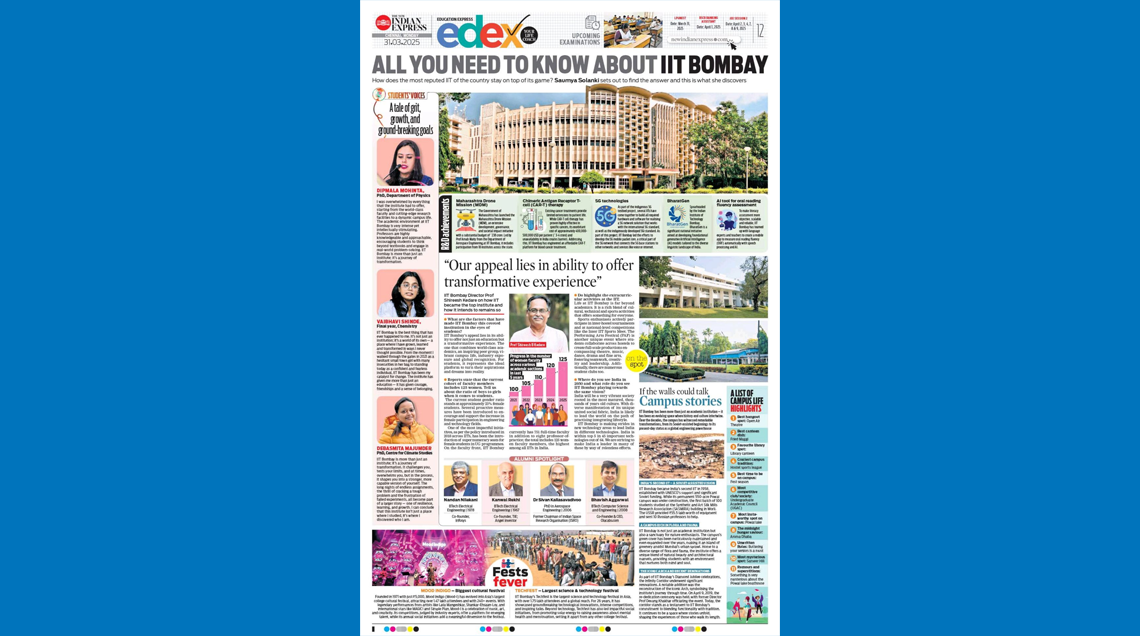 Also, Edex Live, the education vertical of The New Indian Express, featured a wide-ranging interview with Prof. Shireesh Kedare, Director, IIT Bombay. In the conversation, Prof. Kedare spoke about what continues to make IIT Bombay the top choice for most Advanced JEE toppers, the Institute’s ongoing efforts to promote gender diversity among faculty and students, emerging trends in education, the future of infrastructure at the campus, and more.