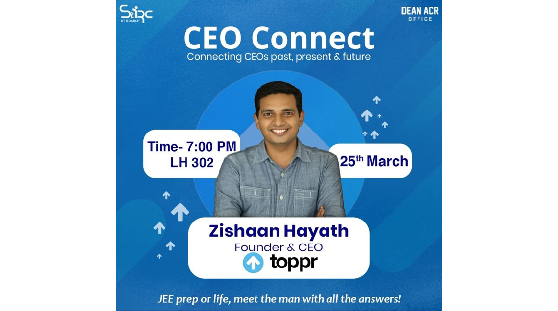 IIT Bombay and SARC hosted version 3 of their extremely successful CEO Connect with IITB alumnus, Mr. Zishaan Hayath (B.Tech, Civil Engineering, 2005), Founder & CEO, Toppr.