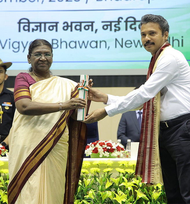 Prof. Raghavan Sunoj from IIT Bombay did the Institute proud when he received the National Award to Teachers 2023 for Higher Education by the Hon’ble President of India at a ceremony held at Vigyan Bhawan, New Delhi, on Teachers’ Day 2023. He received a silver medal and Rs. 50,000 cash for the same. In an interview with the Times of India, one of Prof. Sunoj’s former students, IITB alumnus, Yash Sanghvi, said, “Prof. Sunoj was one of the professors taking our first-year chemistry introduction course (CH105). I distinctly remember the commotion in the hostel the night before our CH105 midsem. Turned out that Professor Sunoj had dropped by to clear the anxious freshers’ doubts before the exam.